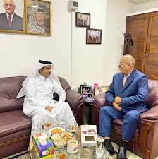 وخلال اللقاء تبادل الجانبان كلمات الود والترحيب، حيث أعرب سفير دولة فلسطين لسفير دولة قطر عن أطيب تهانيه وخالص تمنياته بدوام التوفيق والنجاح في مهام عمله الجديد.