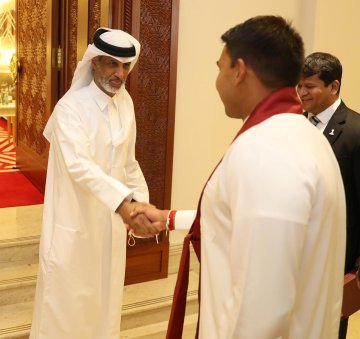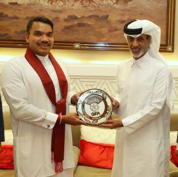 اجتمع وزير الشباب والرياضة السريلانكي نامال راجباكسا أمس الخميس مع الشيخ حمد بن خليفة بن أحمد آل ثاني .رئيس الاتحاد القطري لكرة القدم